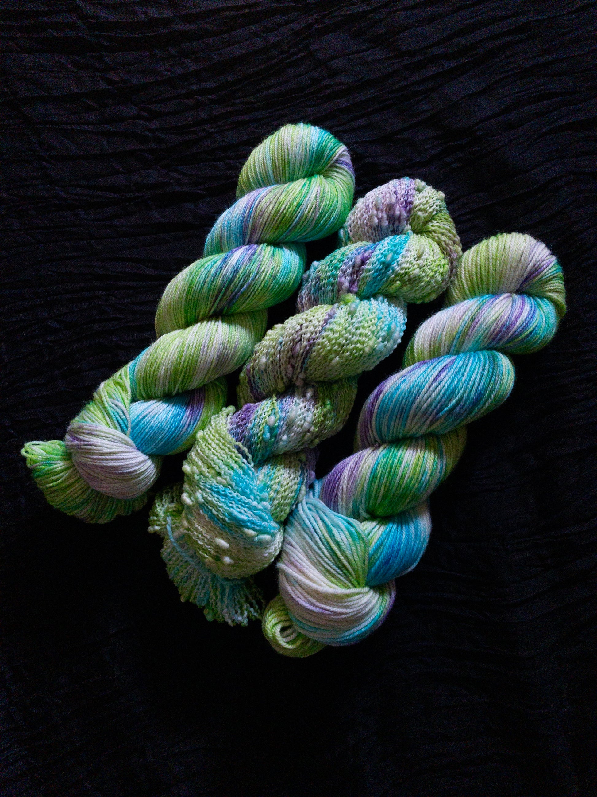 Bases pictured from left to right: Shield Sock, Celebration Slub, Painted DK